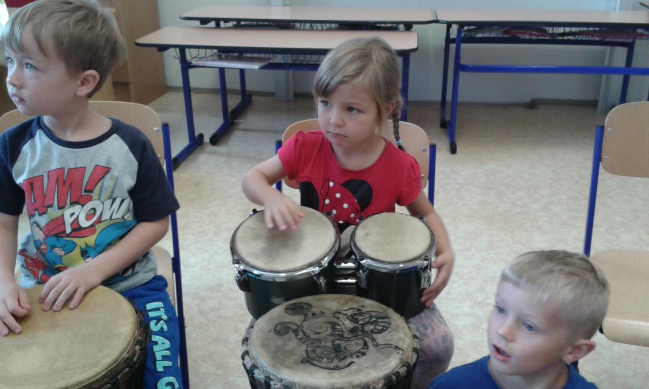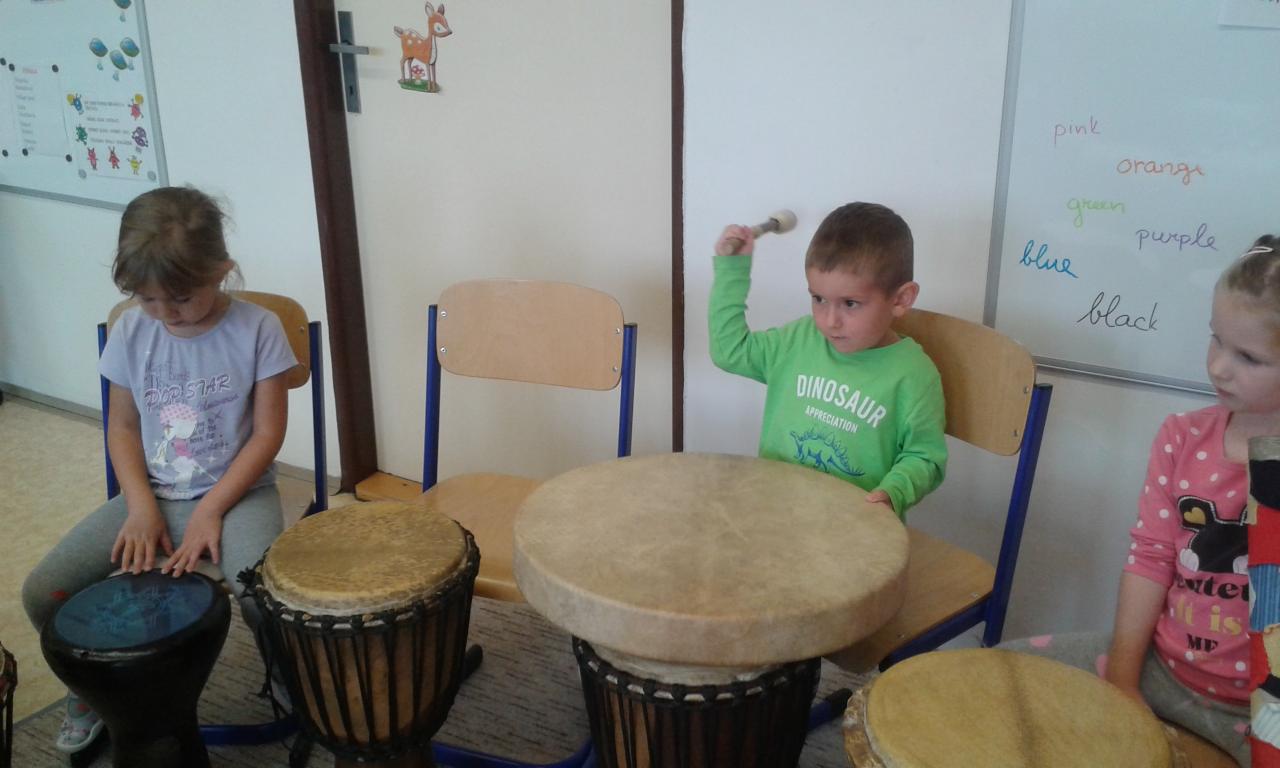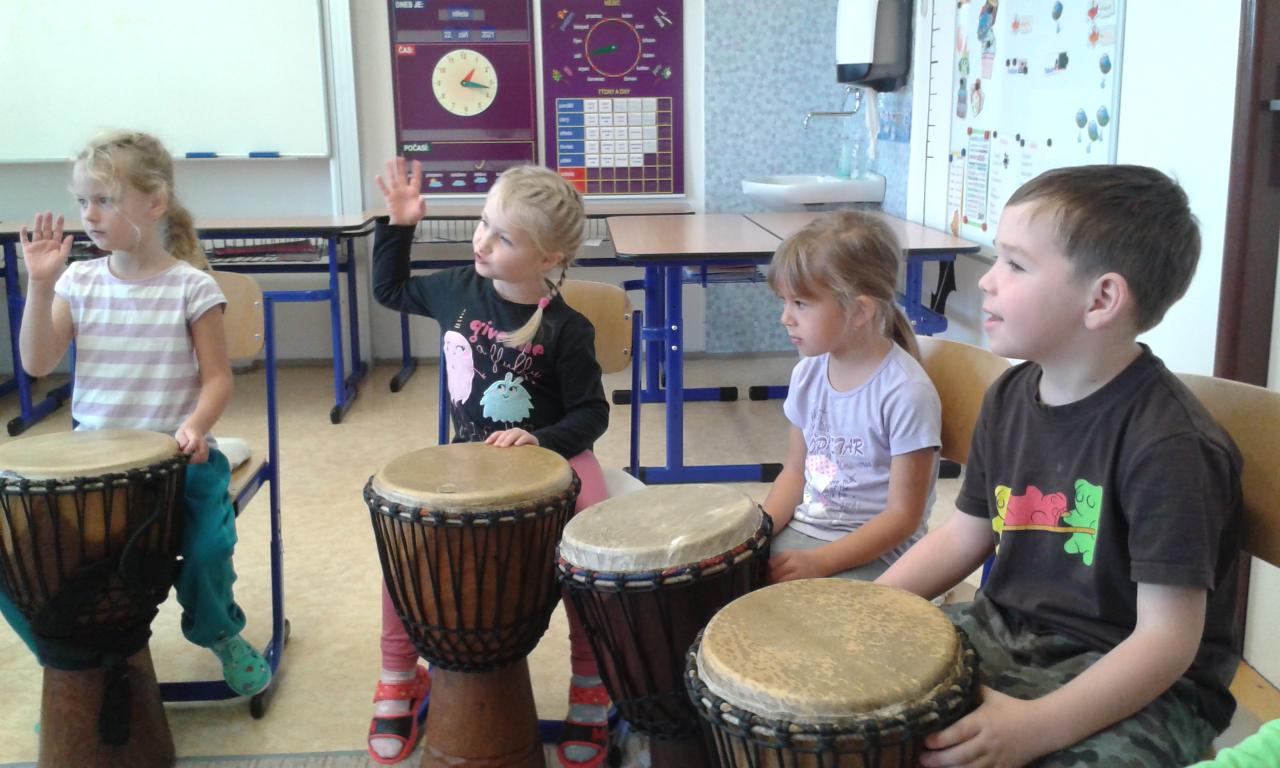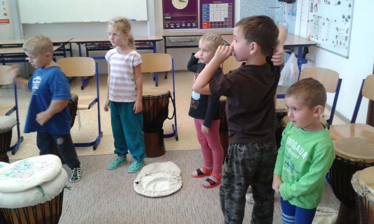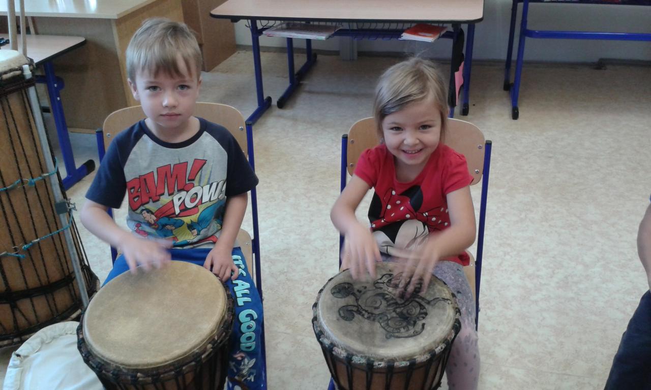 Bubnování s panem učitelem Cvrkem ze ZUŠ Rýmařov