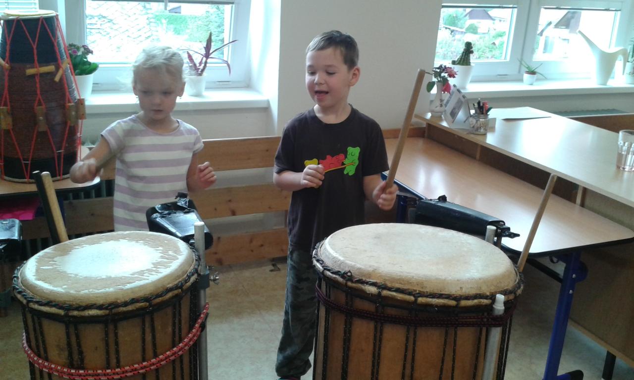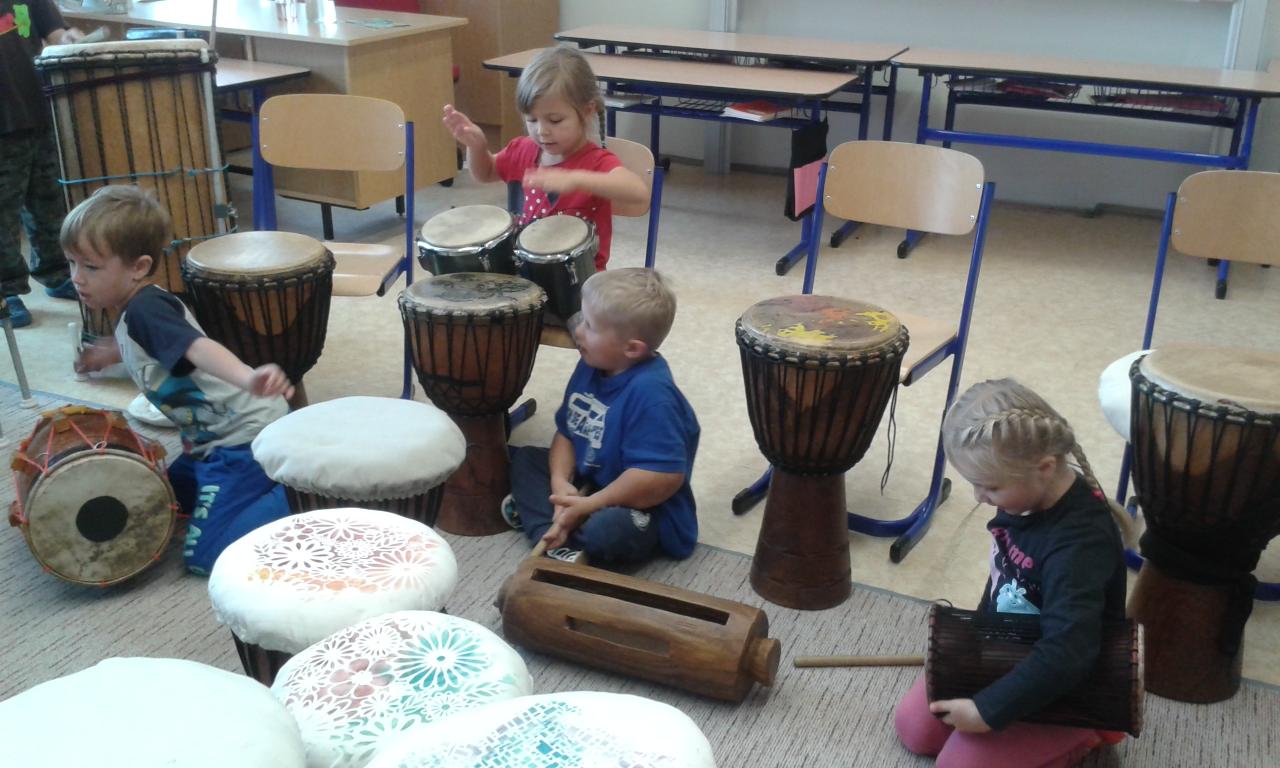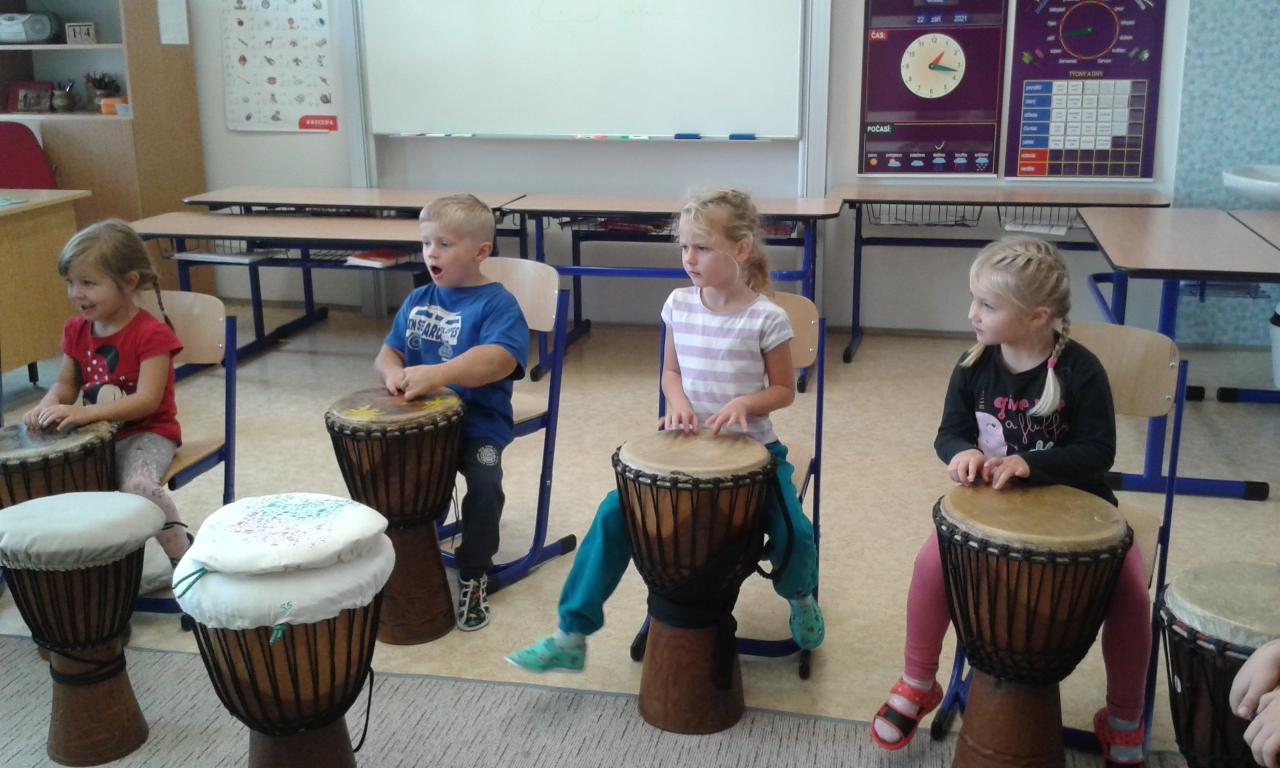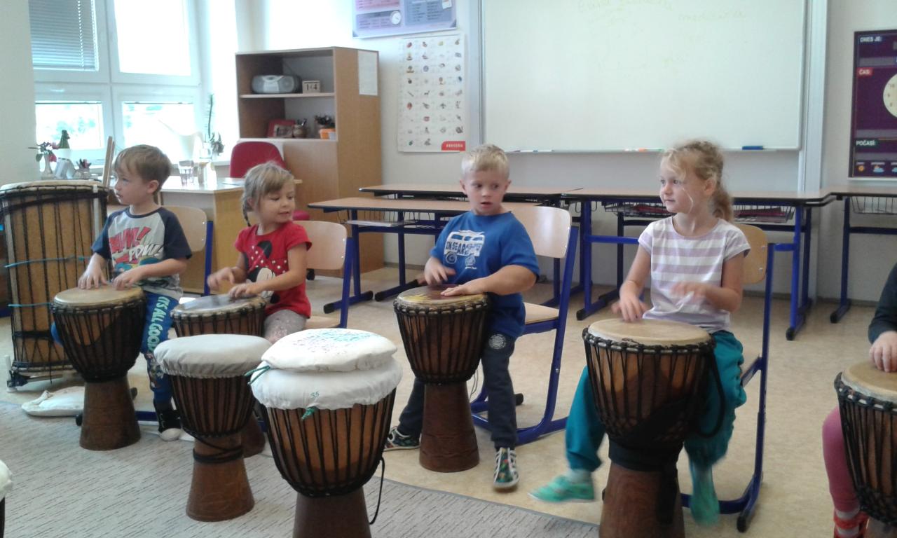 Bubnování s panem učitelem Cvrkem ze ZUŠ Rýmařov