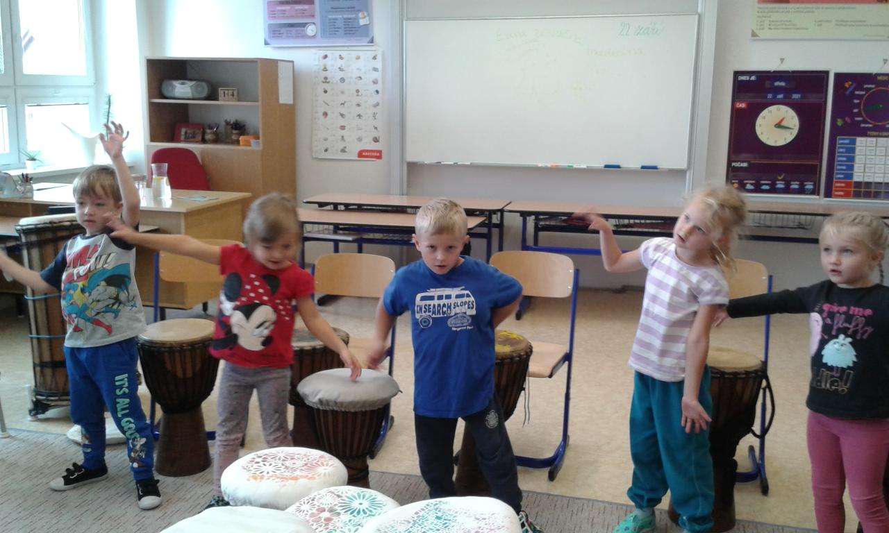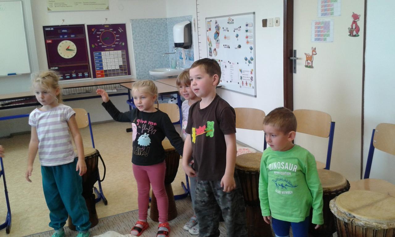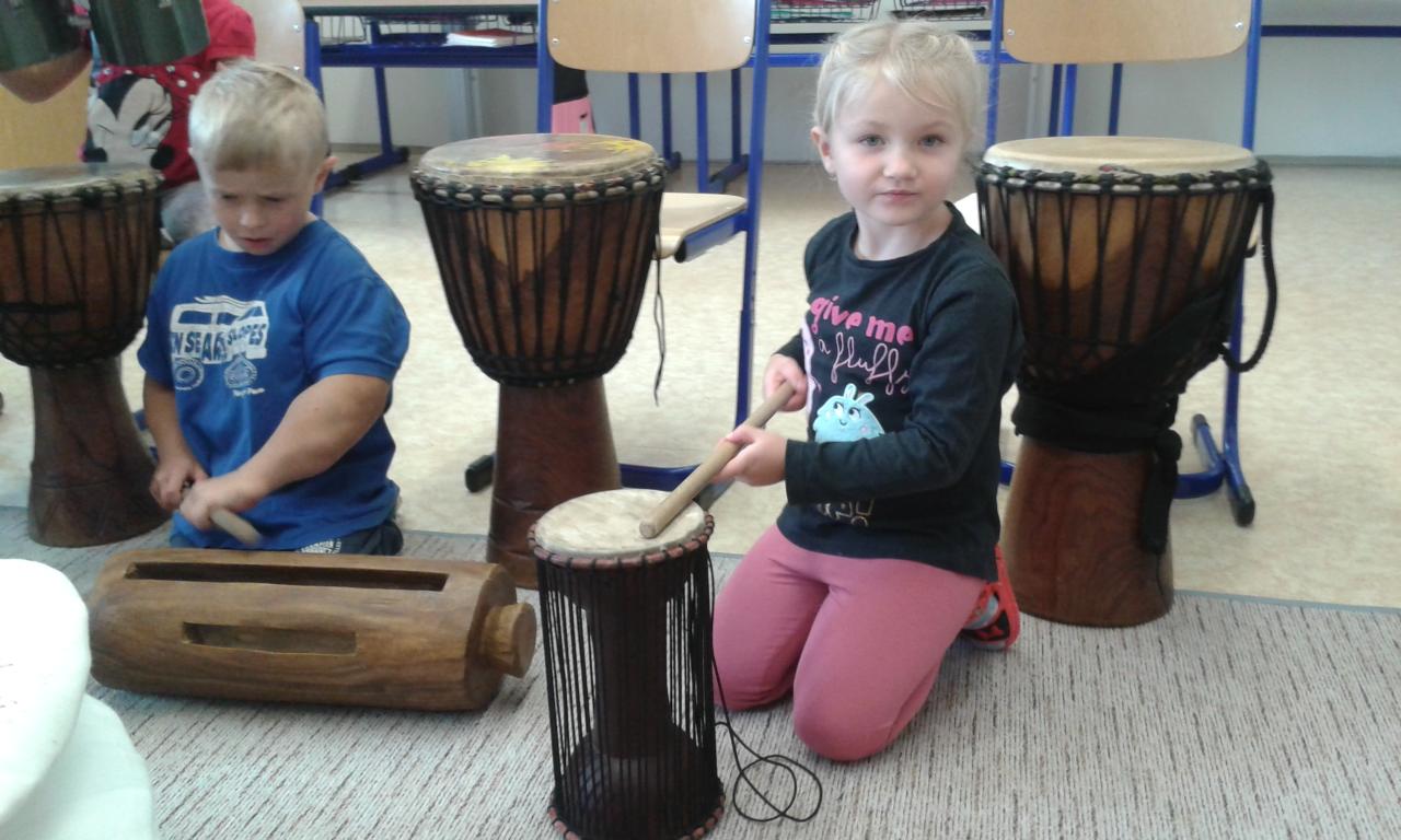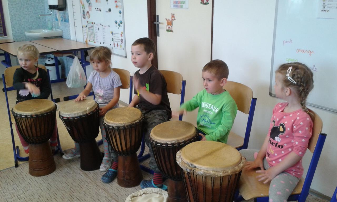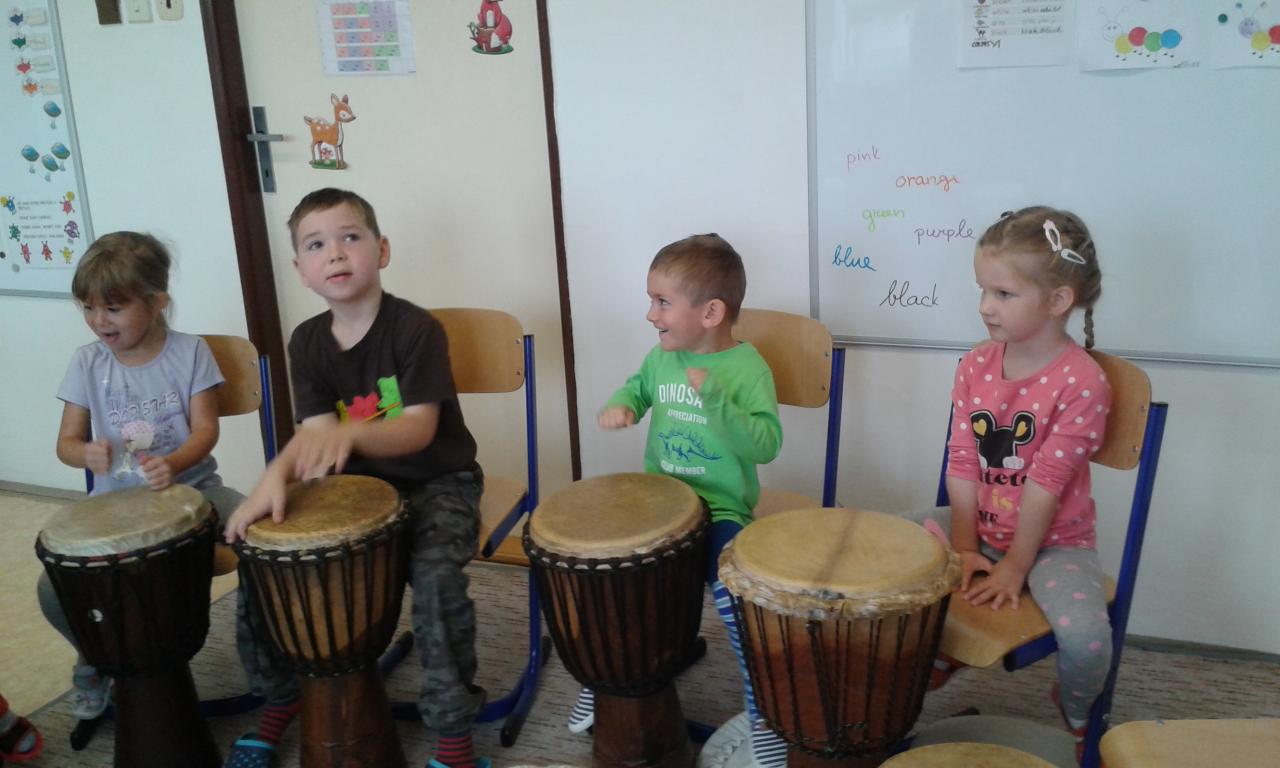 Bubnování s panem učitelem Cvrkem ze ZUŠ Rýmařov