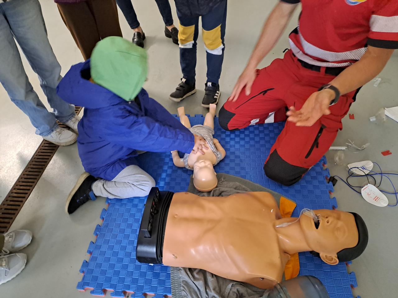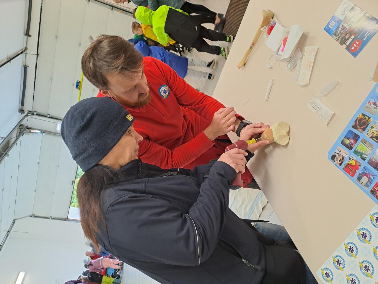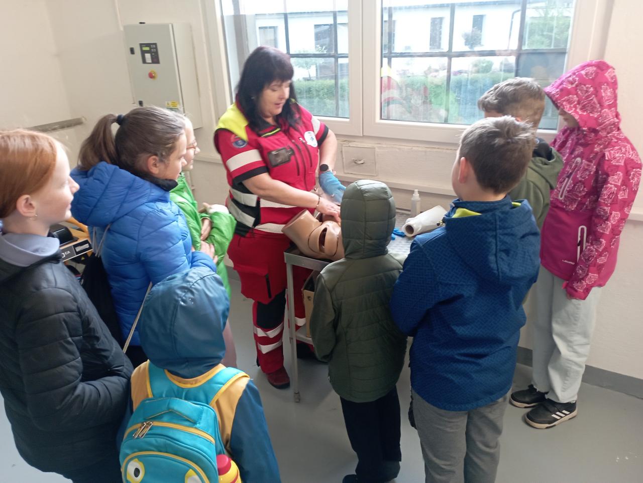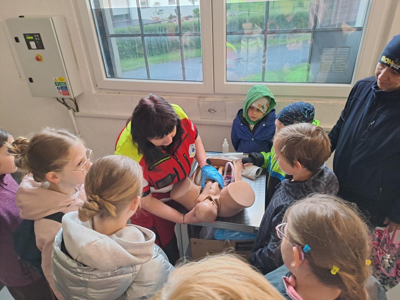 Byli jsme přivítáni šesti úžasnými záchranáři, kteří nás postupně provedli záchranným vozem, prozradili nám, jak vypadá porod nebo že jsou chvíle, kdy je potřeba aplikovat infuzi přímo do kostní dřeně. Děti si zopakovaly první pomoc a jako malí profíci prováděly srdeční masáž.