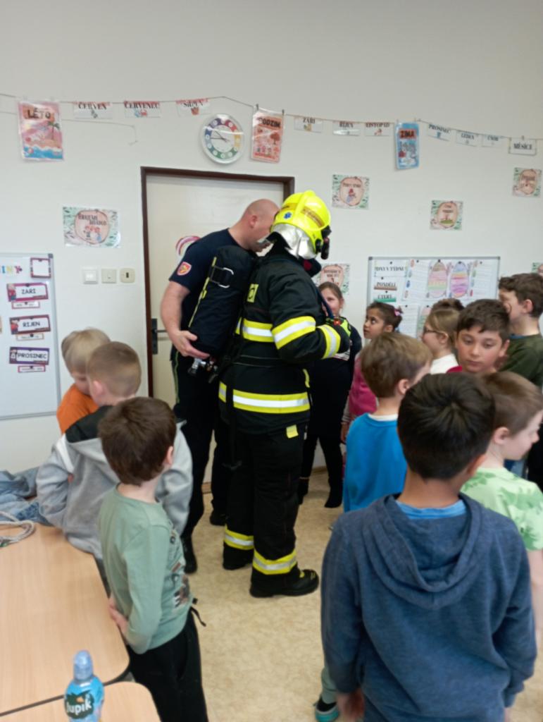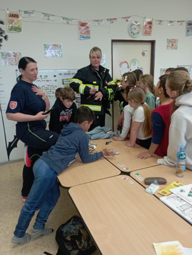 Po roce za námi opět přijeli Evča a Kája z Hasíka. Tentokrát jsme se učili, kdy a jak volat na tísňové linky.