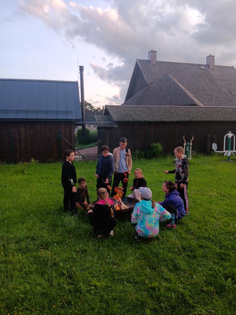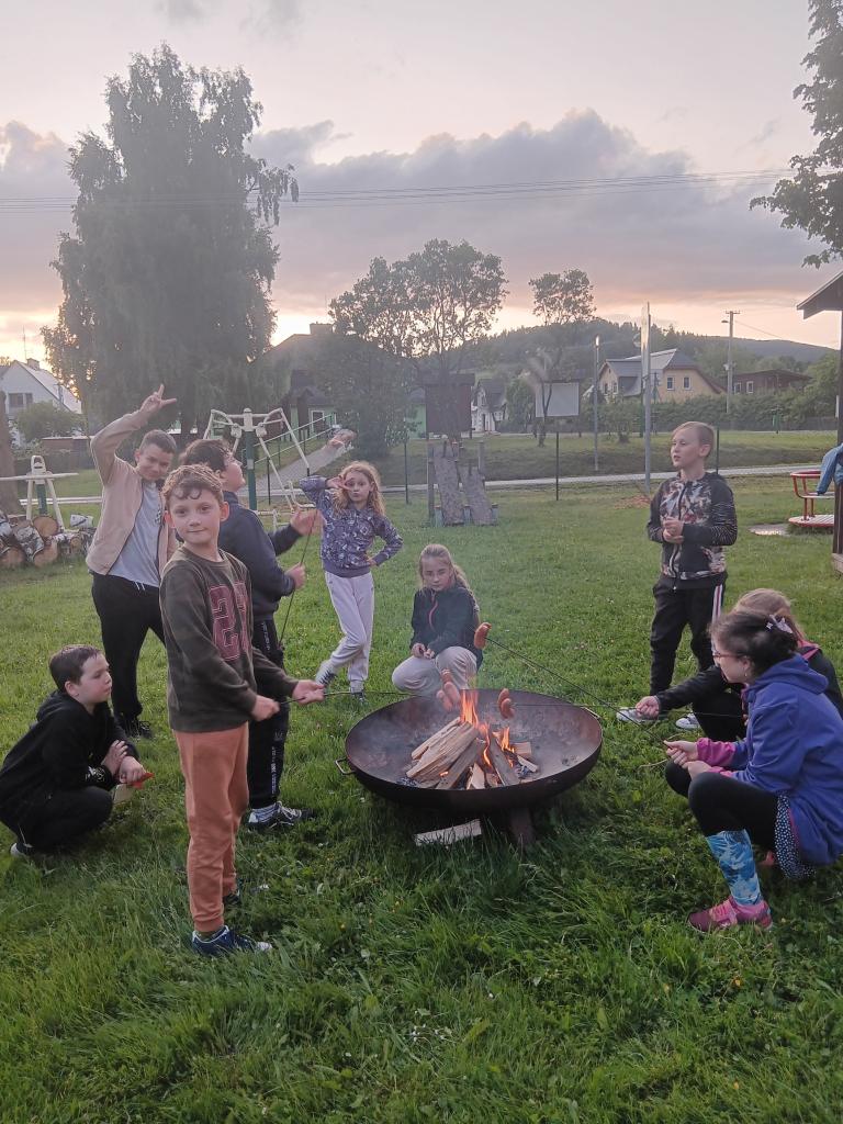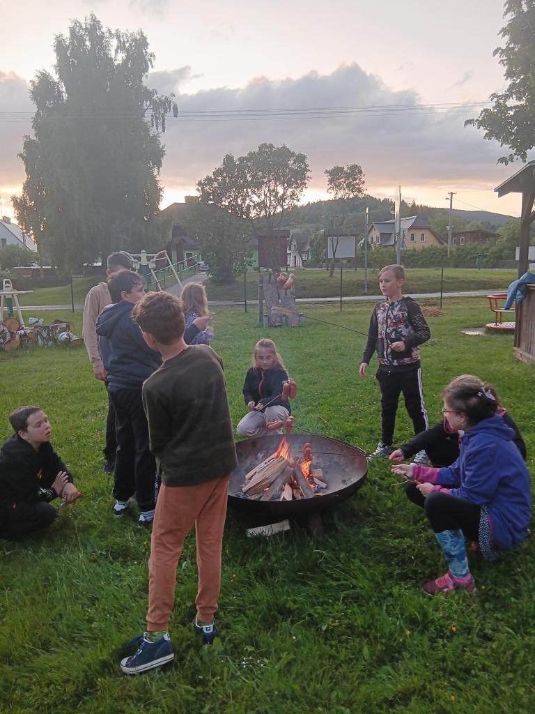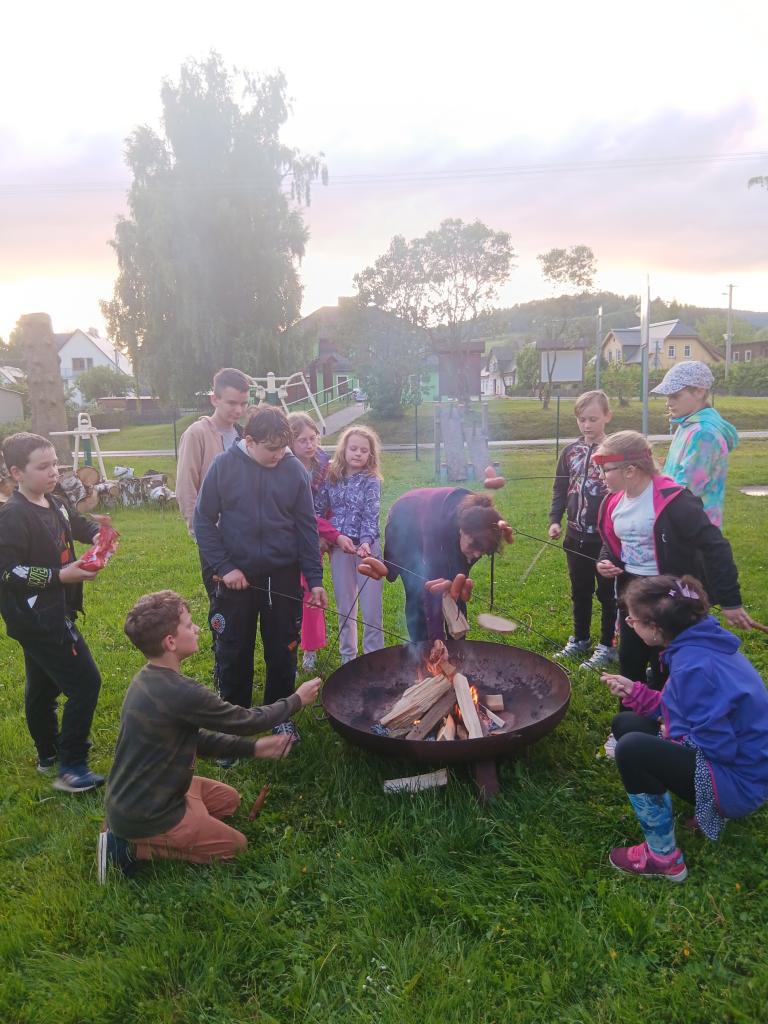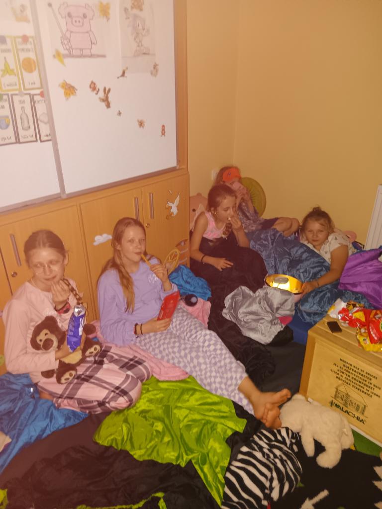 V pátek 6. 6. proběhla už tradiční školní akce spaní v družině. Letos nám vyšlo krásné počasí, takže se uskutečnily všechny naše plány. Tancování, opékání špekáčků, pohybové hry na školní zahradě a hlavně noční stezka odvahy. Každý odvážlivec si odnesl svítící náramek.
