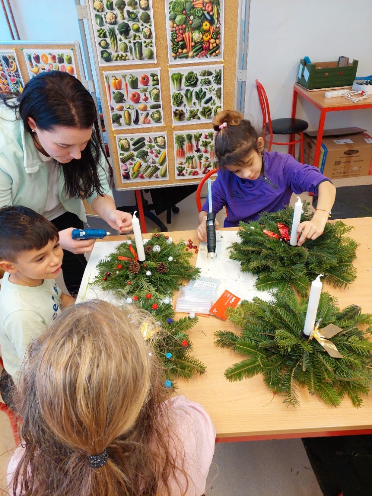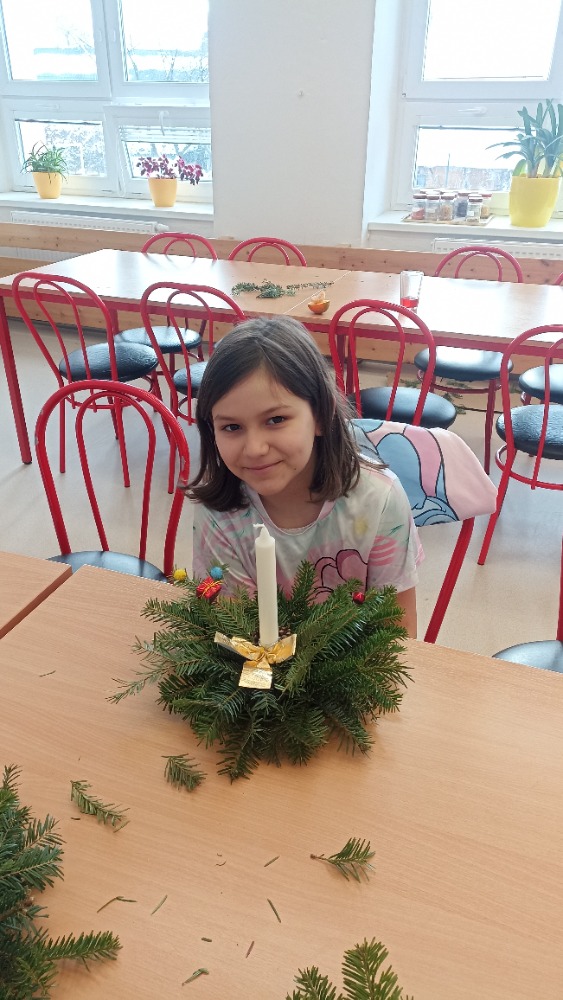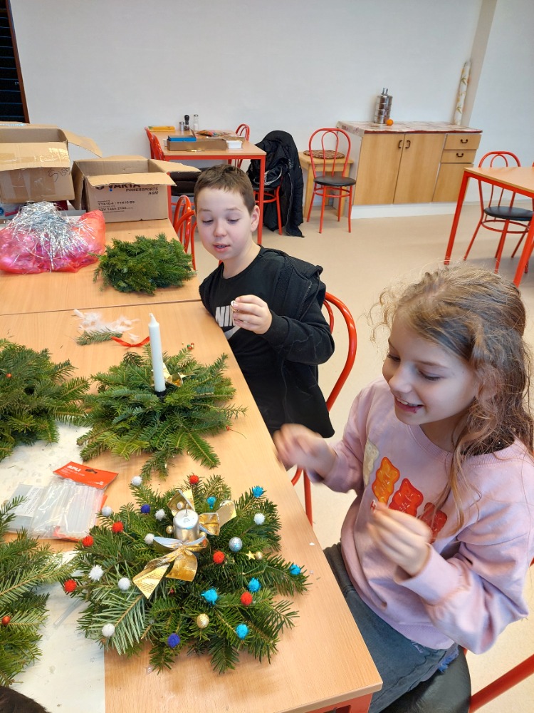 Ve čtvrtek se družina proměnila v tvořivou dílnu před prvním adventem. Děti si vyrobily vlastní adventní dekoraci s větvičkami, mašlemi, svíčkou i drobnými ozdobami. Po nich přišli na řadu rodiče, kteří si vytvořili adventní věnec. Odpoledne se neslo v duchu vánoční atmosféry a všichni si to užili.